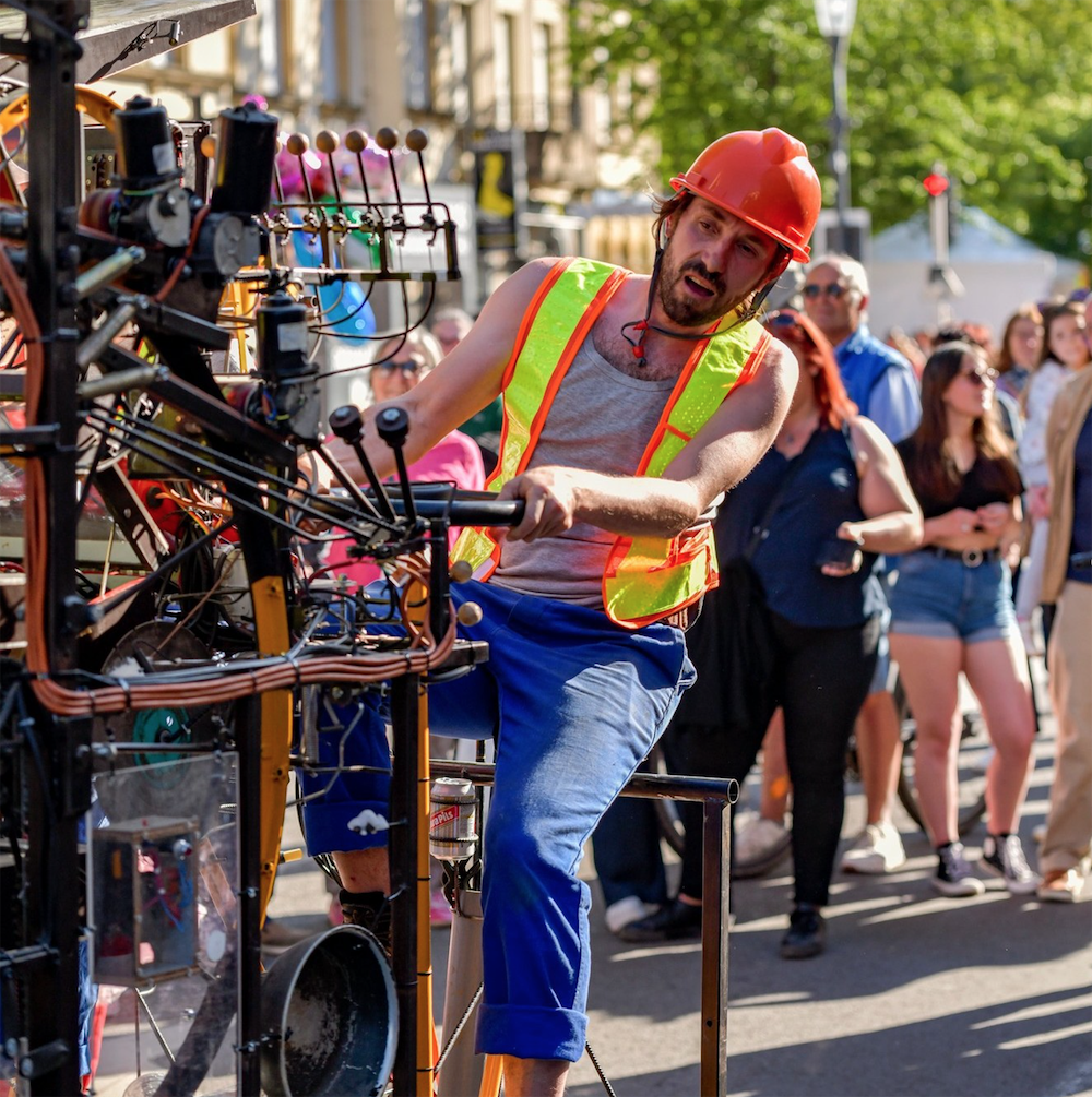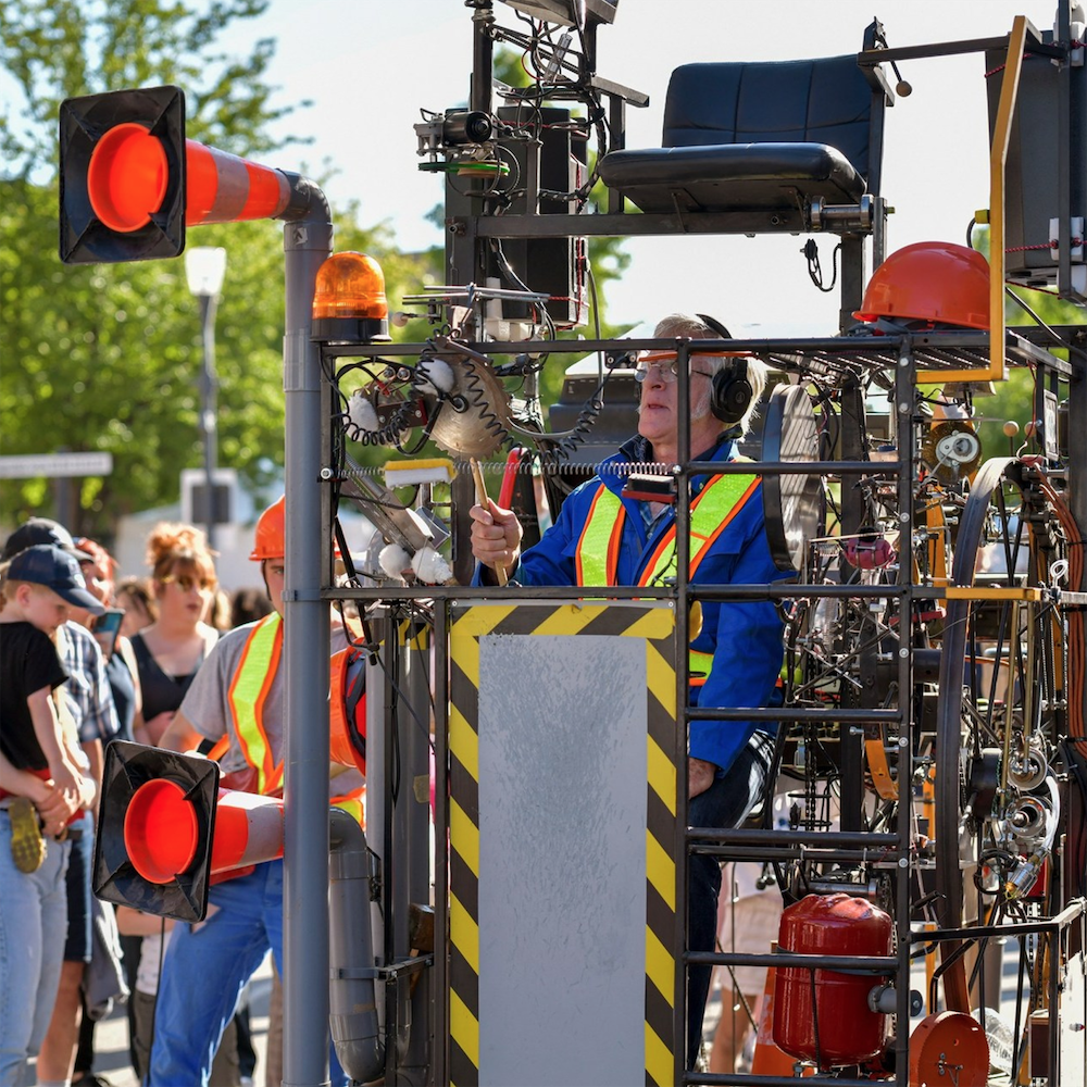 Afin de mener à bien ces missions, nous avons élaboré des équipements mêlant technologie de pointe et dispositifs obsolètes en re-configurant de façon adéquate des morceaux d’outils, des bidules électroniques et des chutes de métal pour créer un engin et des outils qui, manoeuvrés habilement, ne seront pas seulement dangereux parce qu’ils pourraient vous causer de sérieuses pertes d’audition, vous écraser ou vous provoquer une cataracte, mais parce qu’ils pourraient provoquer en vous une envie irrépressible de danser, voire pire : vous faire vraiment aimer le chantier. plus d'infos ICI!